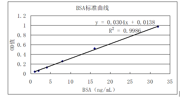 1).如测得的OD值小于标准曲线中2 ng/mL对应OD值,则BSA含量测定结果计为小于2 ng/mL。